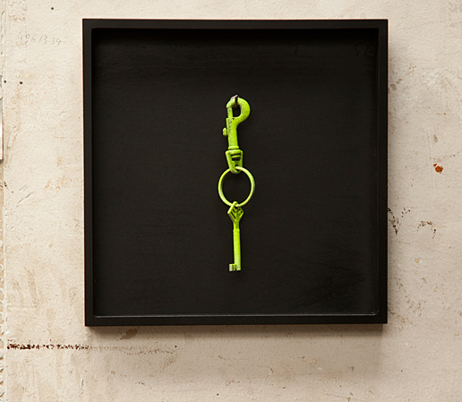 KANN ICH GLEICHZEITIG DURCH ZWEI TÜREN GEHEN? Schlüssel Lack Holz, 30 x 30 cm, EUR 120.-