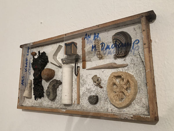 Vergessene Dinge, verschiedenste Materialien, Banales und Skurriles bekommen für den Künstler beim in die Handnehmen eine andere Wertigkeit, etwas Seltsames.