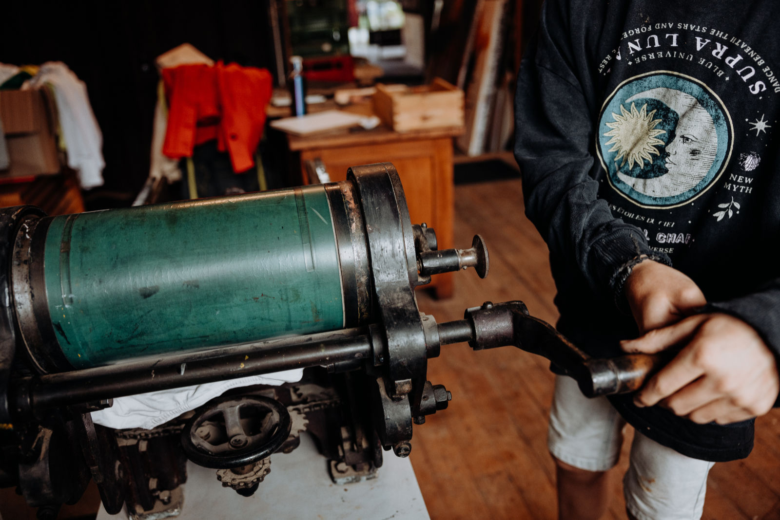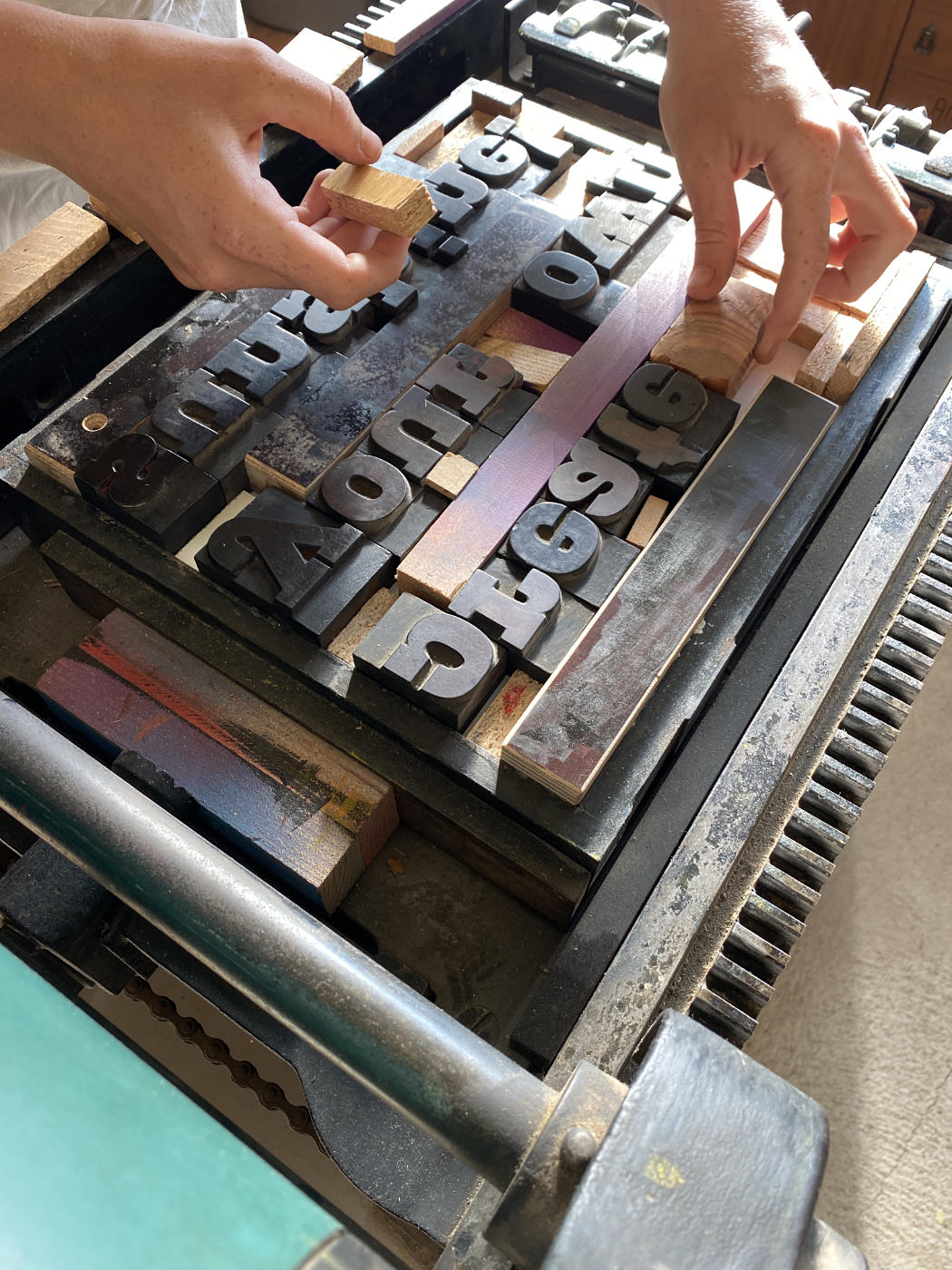 In der Druckwerkstatt kannst du dich der ältesten Drucktechnik, dem Hochdruck, nähern und Erfahrungen mit einer über 100 Jahre alten Druckpresse sammeln.