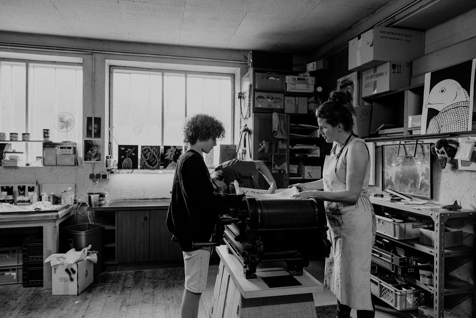 Wir beginnen den Kurs am Vormittag mit einem Rundgang durch die Druckwerkstatt und einer Erklärung der einzelnen Arbeitsschritte.