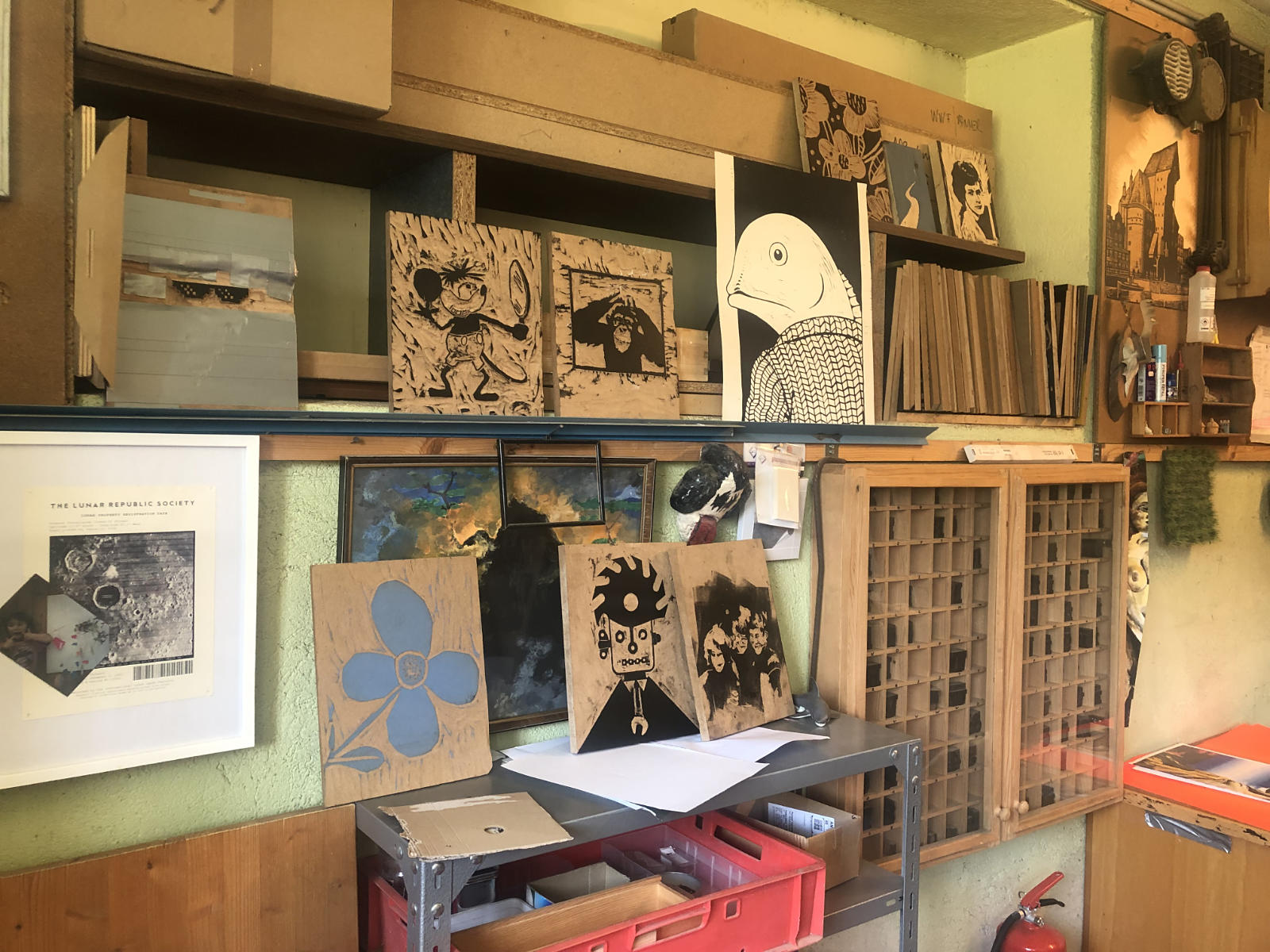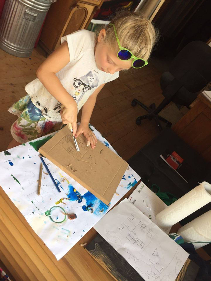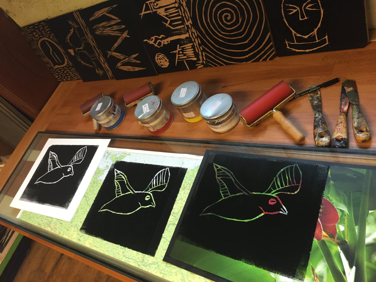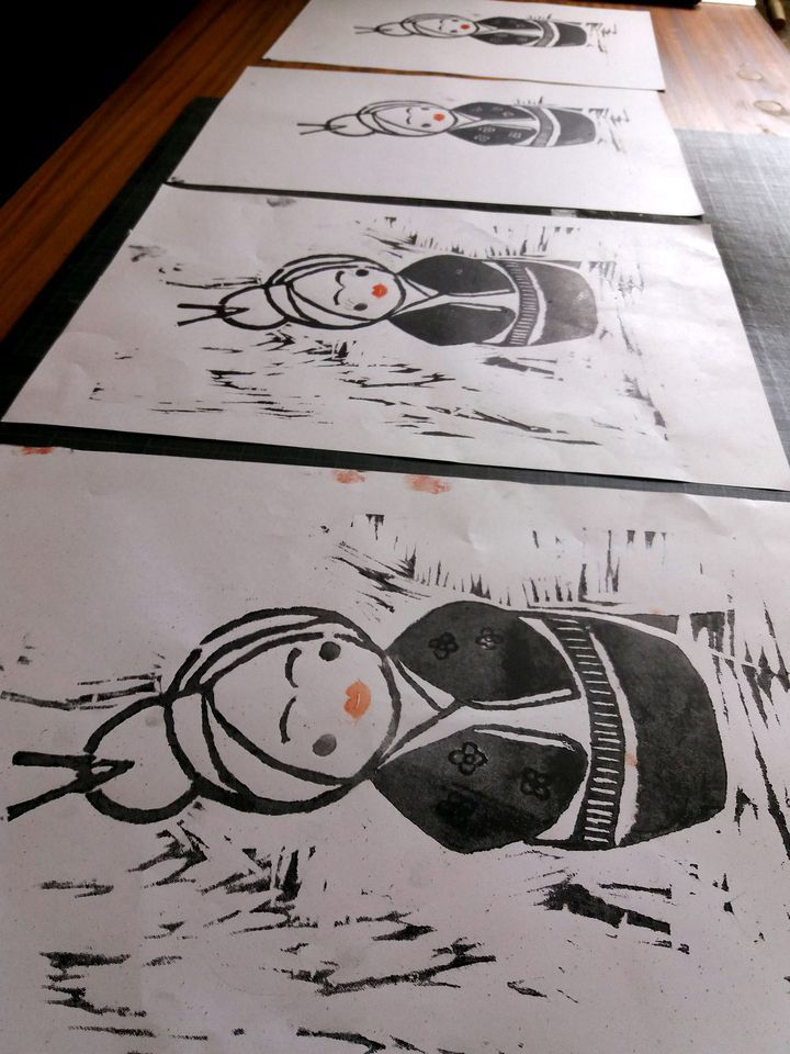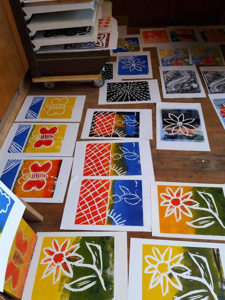 Eine Holzplatte und 10-15 A3 Blätter Standard sowie die Linoldruckfarben sind im Kurspreis inbegriffen.