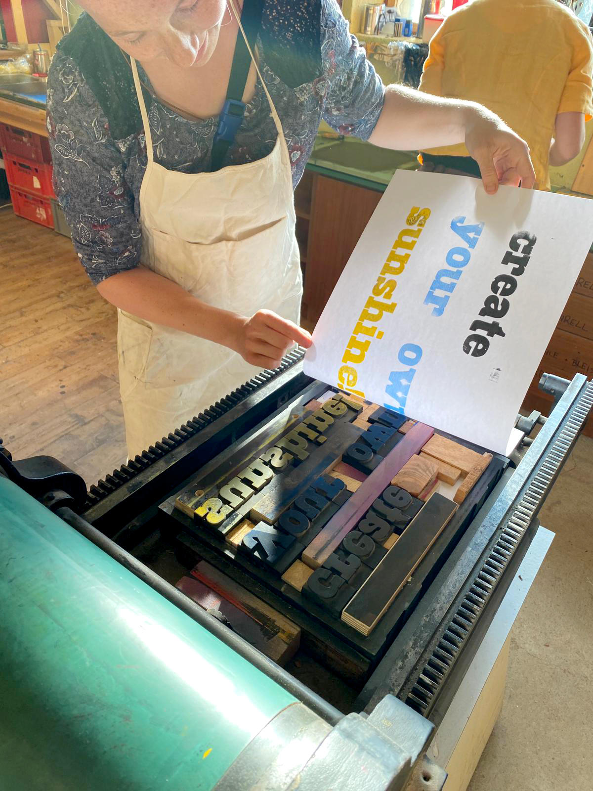 (vormittags Vorbereiten der Druckplatte, nachmittags drucken und umsetzen)